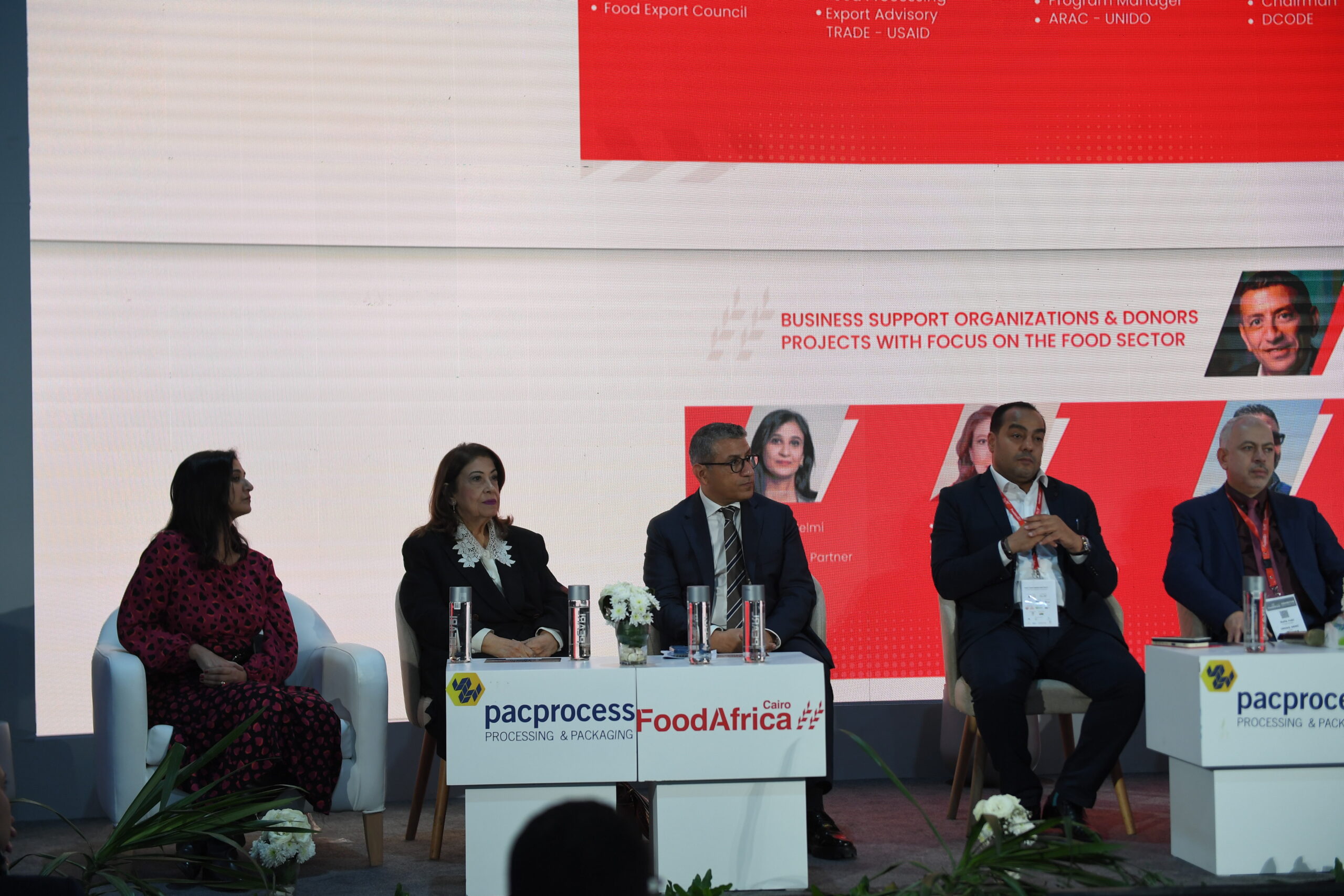 During her speech, she emphasized that the Chamber's strategy is based on building comprehensive competitive value chains and achieving sustainable growth, especially since Egypt has the production capacities and qualifications to be a food factory in the Middle East and Africa and the main supplier of food to European markets in light of the presence of strong indicators of opportunities for industry growth and increased exports during the period. In recent years, we have witnessed the transfer of international factories to their production bases to manufacture food in Egypt. Mr. Mahmoud Al-Basiouni, Executive Director of the Chamber, also participated in a session entitled "Agency and Projects Supporting the Food Processing Sector", and Ms. Reham Ghazi, Director of the Training and Business Development Department, participated in a session entitled "Agricultural Innovation Project"