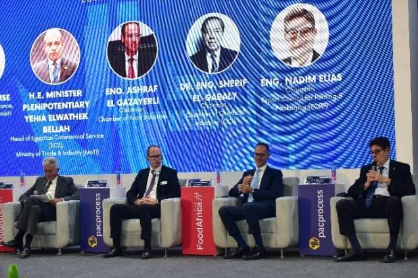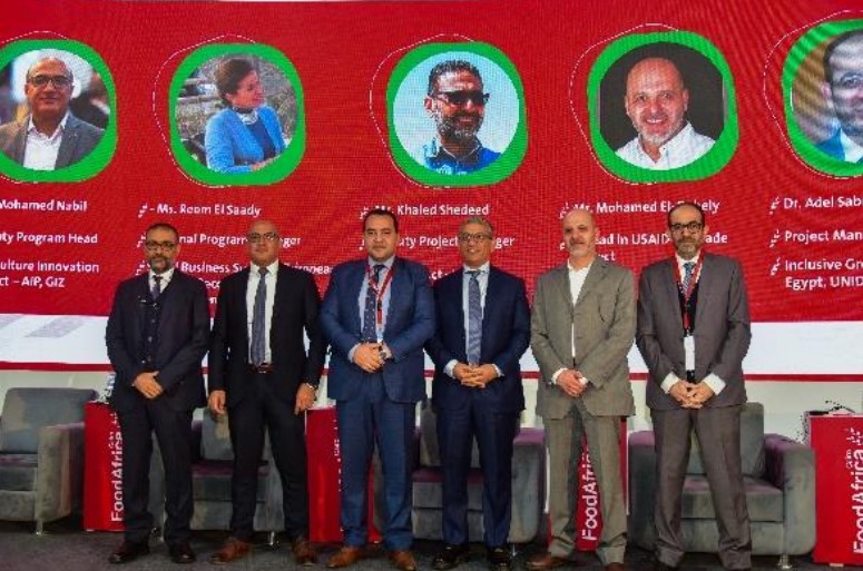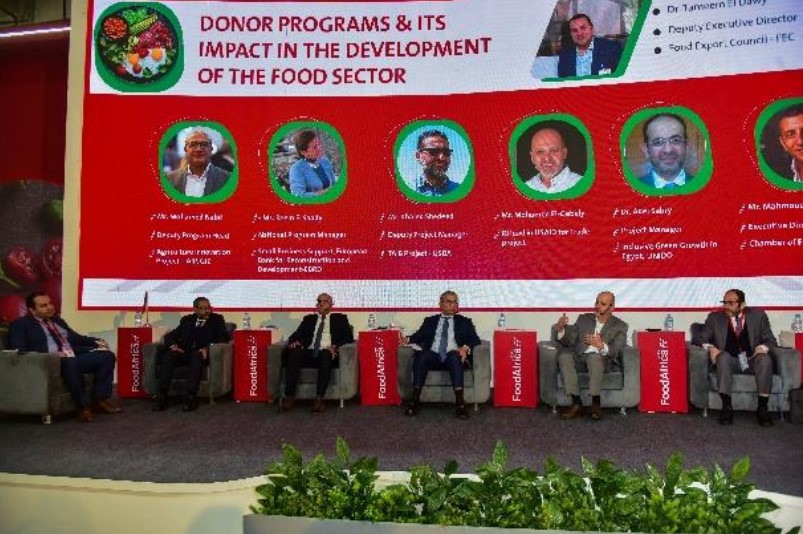 Within the sessions of the third day of the exhibition, Mr. Mahmoud Al-Bassyouni, Executive Director of the Chamber of Food Industries, participated in a session on the importance of development projects and their effects on supporting the sector. The session was moderated by Dr. Tamim Al-Dhawi, Deputy Executive Director and Director of the Export Information Department at the Food Export Council, with the participation of Dr. Khaled Shedid, Deputy of the TAIB Project, and Dr. Adel Sabry, Director of the Inclusive Green Growth Project - UNIDO, Mohamed El-Gabaly, Advisor to the Trade and Export Development Project in Egypt, funded by the United States Agency for International Development (USAID), and Mohamed Nabil, Vice President of the Agricultural Innovation Project and Senior Value Chain Advisor, at the German Development Agency (GIZ).